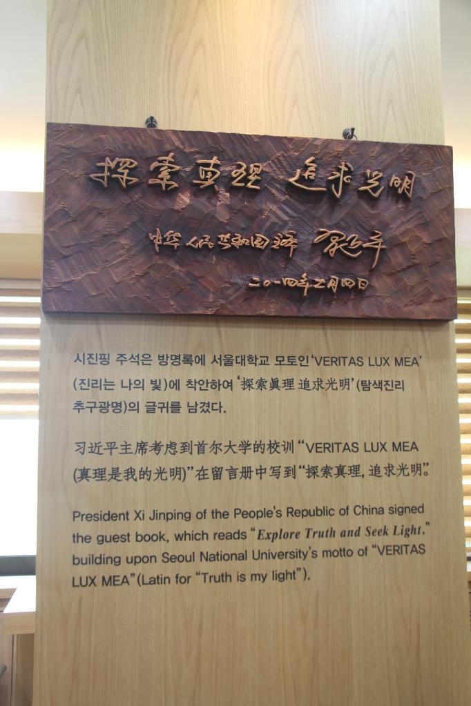 这是习近平主席给首尔大学的亲笔题词。