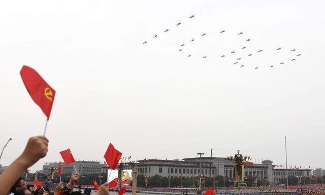 7月1日上午,庆祝中国共产党成立100周年大会在北京天安门广场隆重举行。这是飞行庆祝表演。